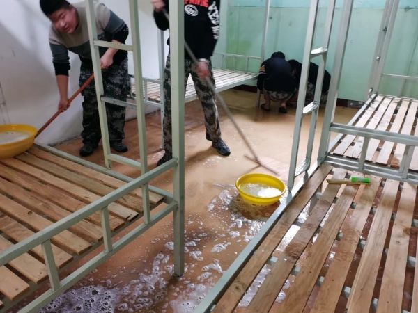 全校師生分組對學校廁所、辦公走廊、教室通道、學生宿舍、實訓大廳等場所進行大掃除,徹底清理衛生死角,暢通下水道,清除雜草雜物,及時清運垃圾,保持環境衛生、干凈、整潔,做到溝見底、軸見光、地面能反光!