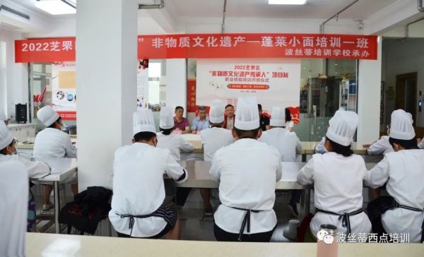 7月13日上午,2022芝罘區“非物質文化遺產·蓬萊小面”項目制職業技能培訓班在煙臺波絲蒂中西糕點職業技能培訓學校(煙臺波絲蒂面點培訓、煙臺西點培訓)順利開班。本次培訓是在煙臺市公共就業和人才服務中心的指導下,由煙臺市芝罘區公共就業人才服務中心主辦,煙臺市日報傳媒集團、煙臺市非物質文化遺產保護中心、煙臺市社會組織聯合會教育科技分會、煙臺市波絲蒂中西糕點職業技能培訓學校聯合承辦。旨在更好地傳承發揚“蓬萊小面”這項非遺文化,推進國家非物質文化遺產保護工作,培養一批德才兼備的合格傳承人,培養和帶動非遺專業人才更好地提升技能、就業創業。