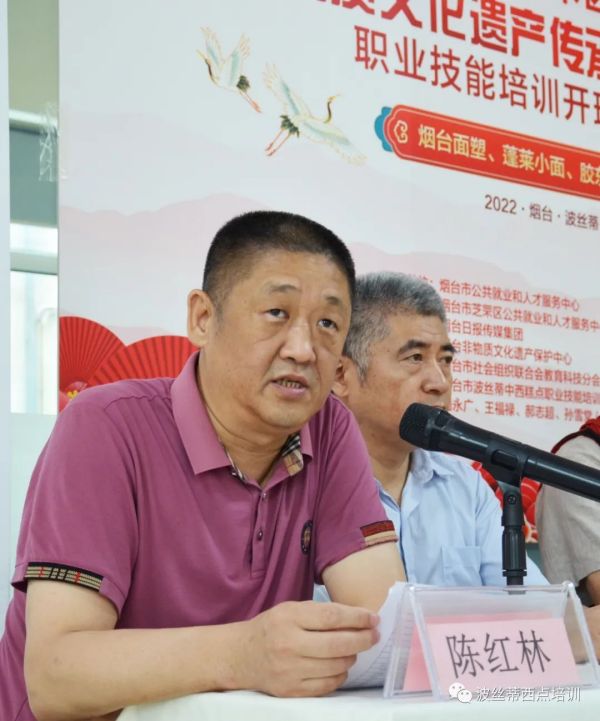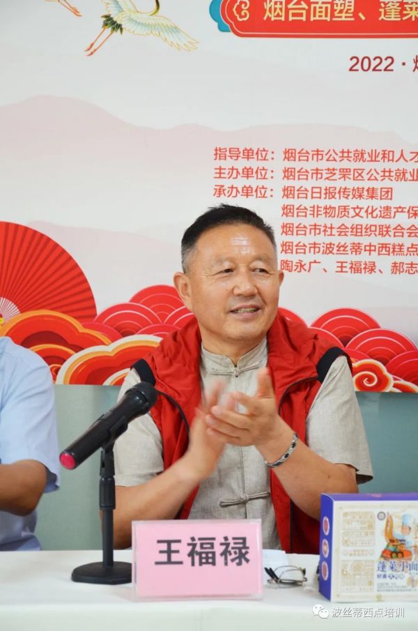 煙臺波絲蒂中西糕點職業技能培訓學校(煙臺波絲蒂面點培訓、煙臺西點培訓)校長陳紅林在開班儀式上講話:蓬萊小面作為一種民間生命力極強的造型藝術,生長和扎根于百姓生活,已成為民俗風情獨特的表現方式,建國以來,葉劍英,李鵬,胡耀邦等黨和國家領導人來蓬萊考察,都品嘗了蓬萊小面,對其贊不絕口,并鼓勵將其傳承下去,現如今,在傳承人王福祿老師的帶領下,蓬萊小面呈現出百花齊放滿園春的景象,蓬萊小面的技藝傳承發展、聲譽傳播發揚,將非物質文化遺產的保護挖掘都達到了一個新的高度。希望各位學員一定要抓住這次難得的學習機會,認真對待,跟著老師學好制作蓬萊小面的技能,增強自身的責任感和使命感,把這項技藝世代傳下去。