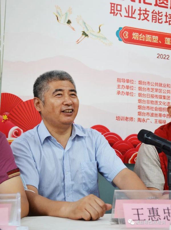 煙臺魯菜研究所副所長王惠忠教授致詞:當前,國家非常重視非物質文化遺產的保護與傳承,把非物質文化遺產轉為課程,為大家提供免費學習的機會,首先要感謝政策為大家提供這么好的學習機會,另外還要感謝非遺文化的傳承人對非遺產品的保護、挖掘和發揚,今后希望通過大家的學習傳播,共同把蓬萊小面的技藝發揚光大。