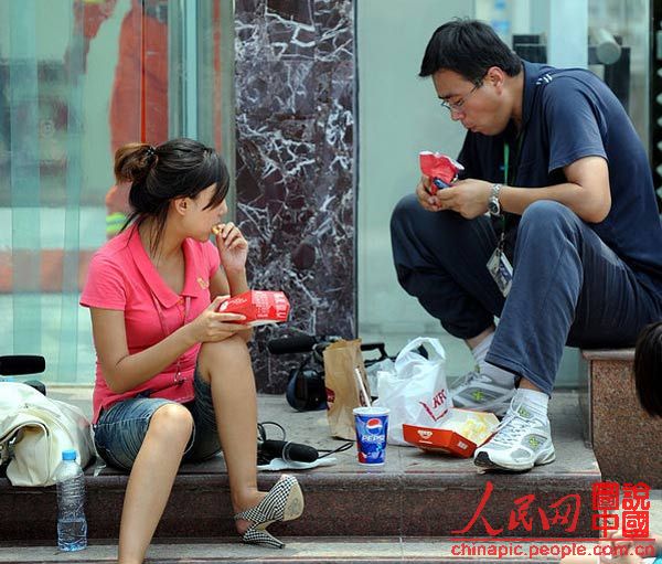 吸引來不少記者,快餐擺了一地。