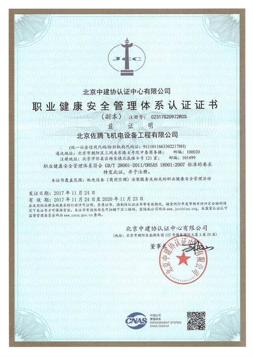 企業(yè)職業(yè)健康安全管理體系認(rèn)證證書