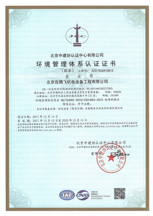 企業(yè)環(huán)境管理體系認(rèn)證證書