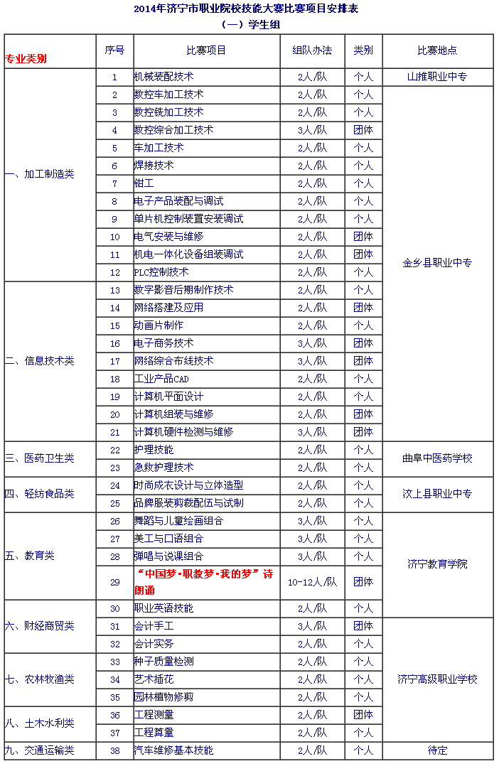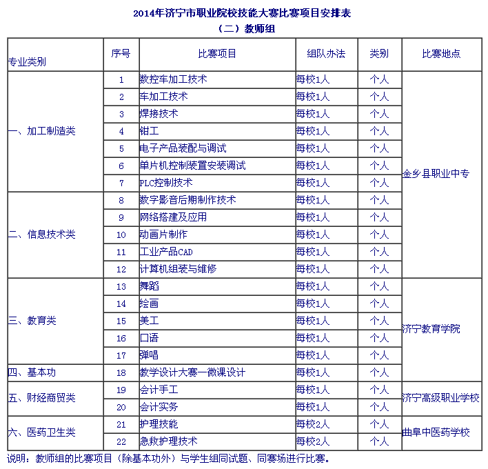 山東技校網 >> 時事熱點 >> 濟寧市職業院校2014年技能大賽比賽項目安排表