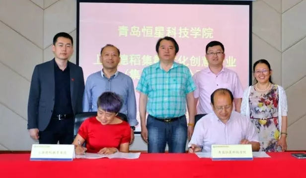 6月13日下午,青島恒星科技學院與德稻教育合作簽約儀式在青島恒星科技學院圖書館貴賓室舉行。德稻教育執行董事蔣嵐、區域總監袁慶剛及青島恒星科技學院董事長、校長陳昌金、副校長徐愛民、副校長陳杰、藝術學院院長姜兆飛等領導出席了簽約儀式。