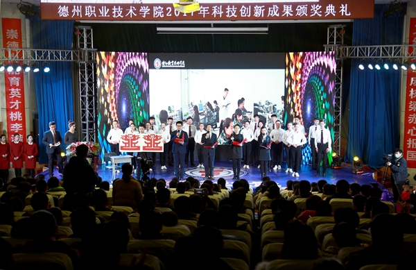 近日,德州職業技術學院2017年科技創新成果頒獎典禮在學術報告廳舉行,黨委書記樊兆杰、院長張同光等為獲獎師生頒獎,各類大賽獲獎師生代表參加典禮。