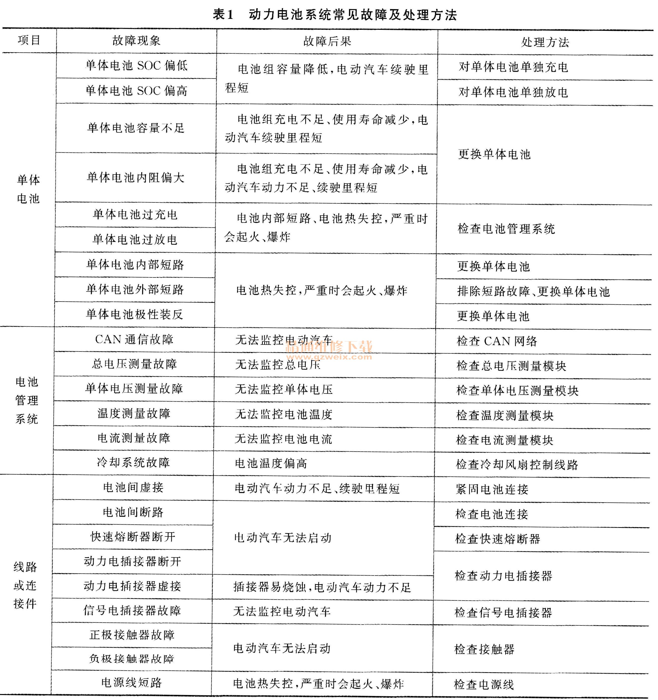 (2)電池管理系統故障電池管理系統對于保障電池組的安全及使用壽命,大限度發揮電池系統效能具有重要作用。電池管理系統通常對單體電壓、總電壓、總電流和溫度等進行實時監控采樣,并將實時參數反饋給整車控制器。電池管理系統除了對電池性能參數進行監控、實施電性能管理以外,還具有熱管理為主的應用環境管理,實施對電池的加熱和冷卻,確保電池的良好應用環境溫度以及溫度場的一致性。若電池管理系統發生故障,就失去了對電池的監控,不能估計電池的soc,容易造成電池的過充、過放、過載、過熱以及不一致性問題的增加,影響電池的性能、使用壽命和行車安全。