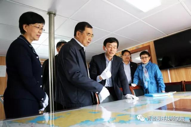 5月8日上午,青島市人大常委會主任宋遠方、副主任劉圣珍等一行到青島海運職業學校(青島海洋技師學院)視察工作。市人大常委會秘書長楊鵬鳴、辦公廳主任隋志強、副秘書長林萍、研究室主任曲知正、教科文衛工作室主任鮑洪義,市教育局副局長王銓、職教處處長李一鷗,市人社局職業能力建設處處長孫倩,青島華通集團董事長姜培生、書記劉甘霖、華通教育投資公司總經理王力及新聞媒體記者等陪同視察。