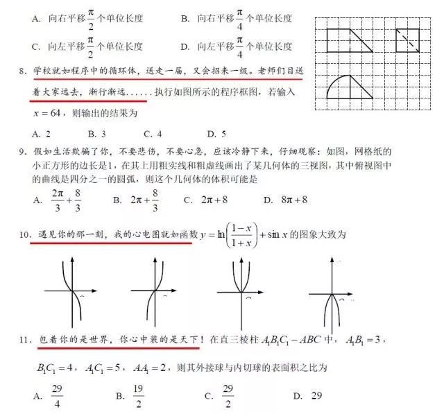 在全國緊張備戰2018年高考之際,荊州中學高三年級一份“全真模擬考試”的數學試卷,在朋友圈走紅,被稱為“解壓試卷”。小編今天帶大家一起走進這套試卷。