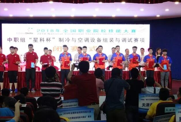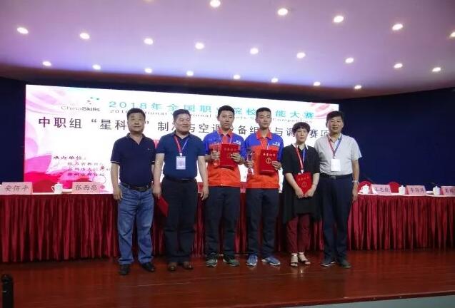 6月5日-6日,2018年全國職業院校技能大賽中職組“星科杯”制冷與空調設備組裝與調試賽項在張家港中等職業學校落下帷幕,山東省濰坊商業學校代表隊制冷專業兩名選手與來自全國31支代表隊的110位選手激烈角逐,以優異的成績各獲得一塊金牌。這是首次濰坊商校兩名參賽選手同時“摘金”。據統計,目前該賽項共獲得10枚金牌。截至目前,濰坊商業學校全國職業院校技能大賽金牌總數已達62枚!