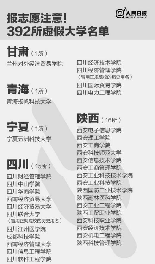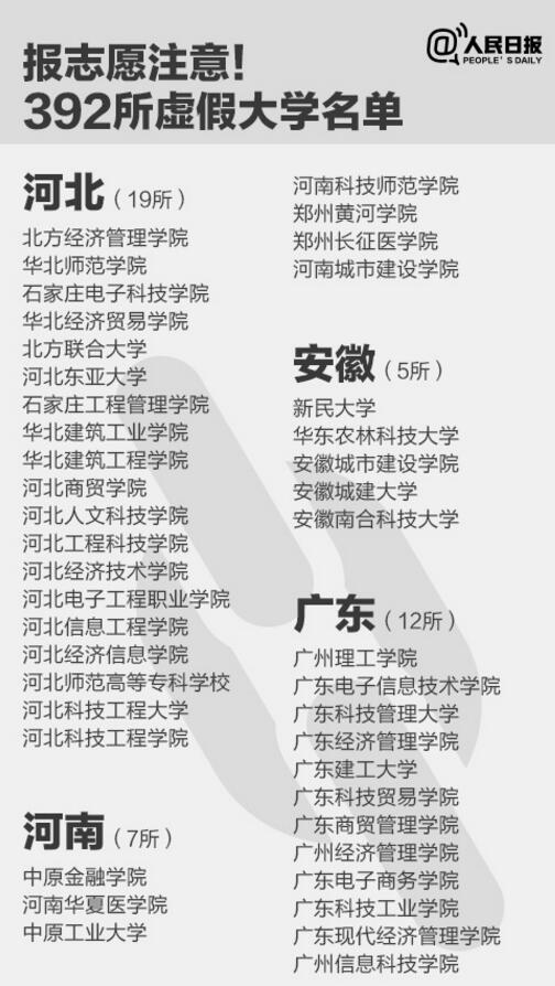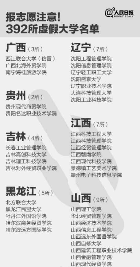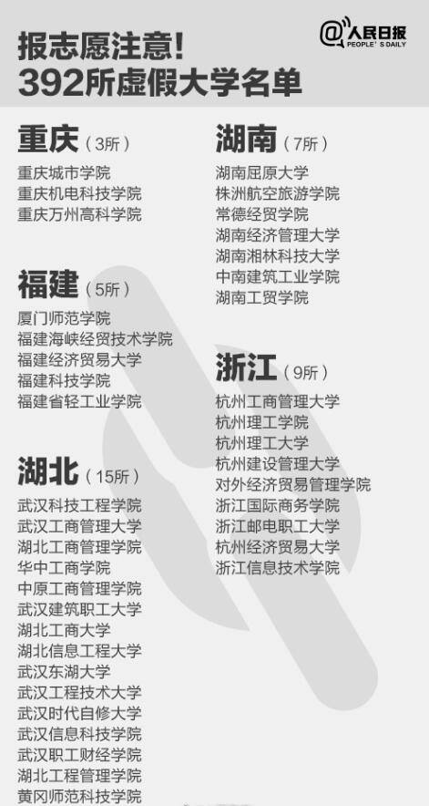 野雞大學就是虛假大學,沒有辦學資質,連文憑也是假的。現在各地高考成績正在陸續公布,學生們正在忙著填報志愿,而這種大學對學生來說就是地雷,一定要避開!現在,全國總共搜羅出392所野雞大學,請大家往下看。