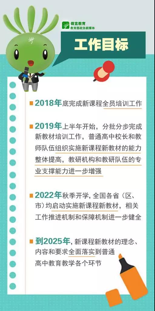 各省(區(qū)、市)要結(jié)合實際,認真總結(jié)前期課程改革經(jīng)驗,組織開展基礎(chǔ)條件評估,深入研究多項改革交替疊加可能給普通高中學校帶來的困難和挑戰(zhàn),在此基礎(chǔ)上提出本地實施新課程、使用新教材的時間,制定相應(yīng)的工作計劃和方案,并于2019年6月底前報教育部。有關(guān)省份要統(tǒng)籌考慮、積極穩(wěn)妥地做好民族地區(qū)新課程新教材實施工作的安排。