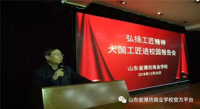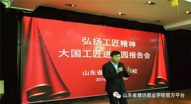 12月25日下午,海爾集團首席技師王陽陽為汽車工程系300多名同學做了一場精彩的報告,與參加報告會的同學分享了自己成長成才的歷程,標志著濰坊商業學校工匠技師進校園活動全面啟動。學校副校長魏延勝與學校招生就業處欒玉梅處長、海爾集團人力資源部門負責人及汽車工程系師生一起參加了報告會。