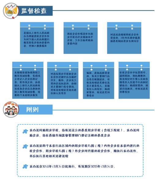 通過明確校企合作的目標、原則、主體、實施、管理、政策等,建立校企合作的基本制度框架,發(fā)揮職業(yè)學校和企業(yè)的主體作用,促進、規(guī)范和保障校企合作的有效開展。《辦法》包括總則、合作形式與內(nèi)容、促進政策與措施、監(jiān)督檢查和附則等五章,共50條。