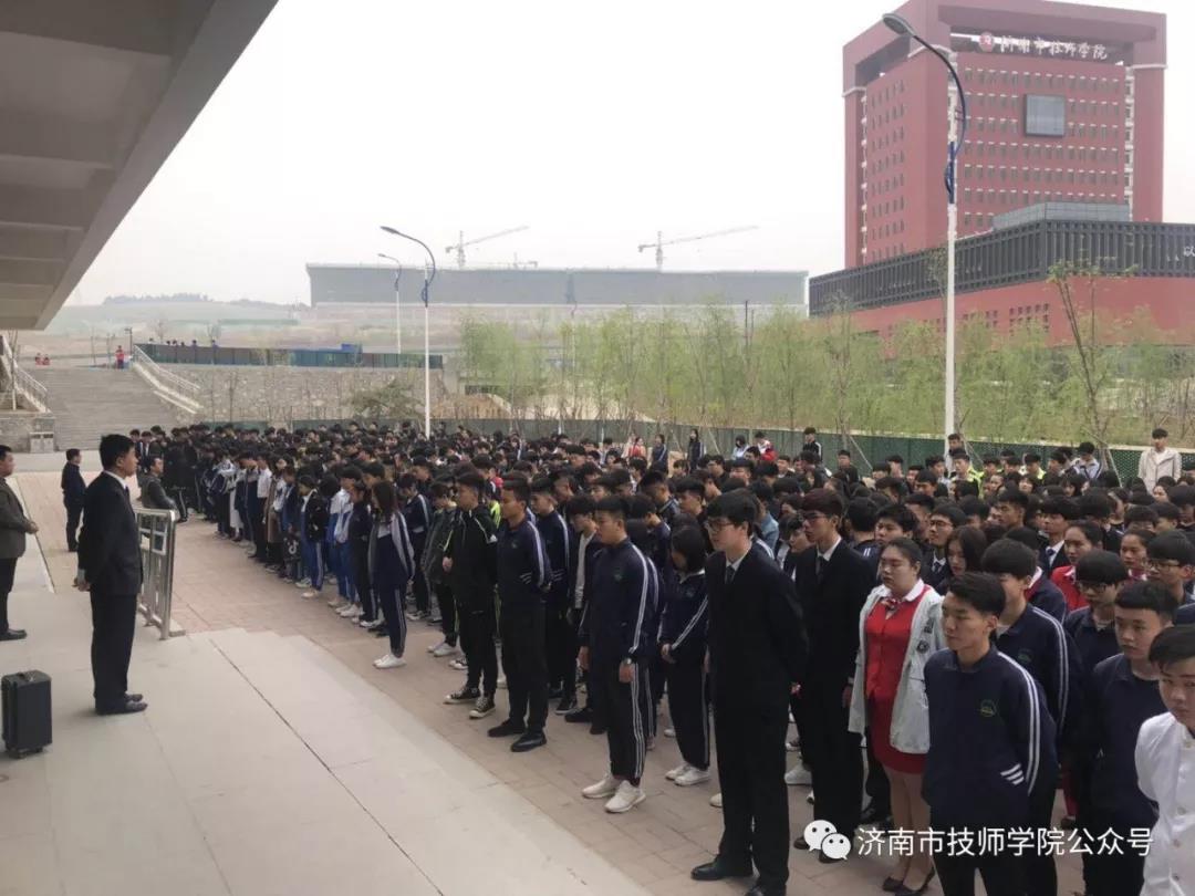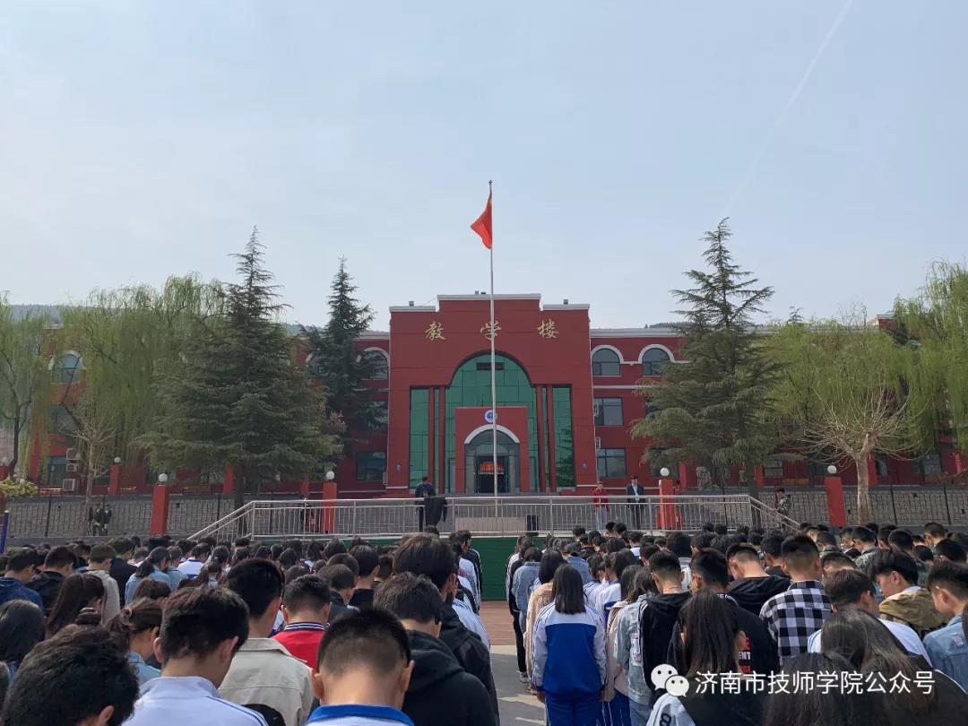 4月4日上午,清明節前夕,濟南市技師學院新特校區利用課間操時間舉行“緬懷先烈、致敬英雄”儀式。