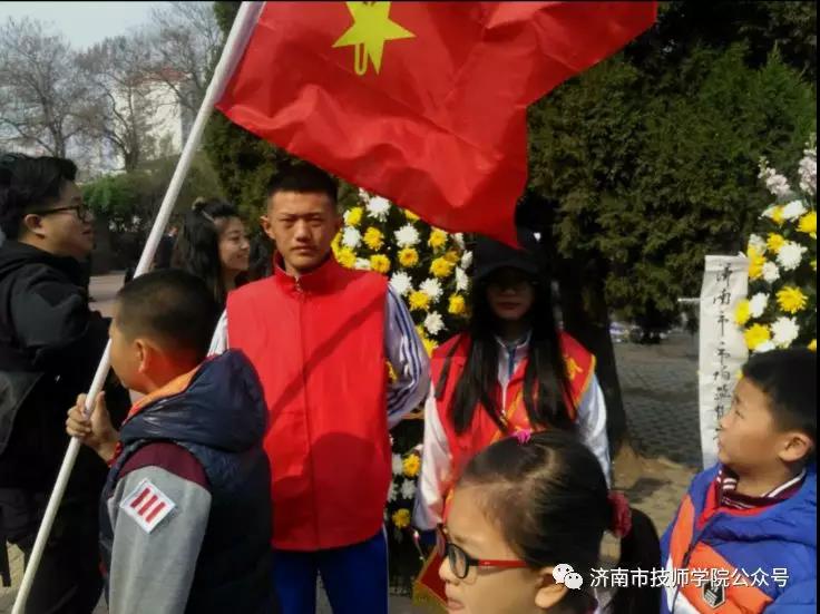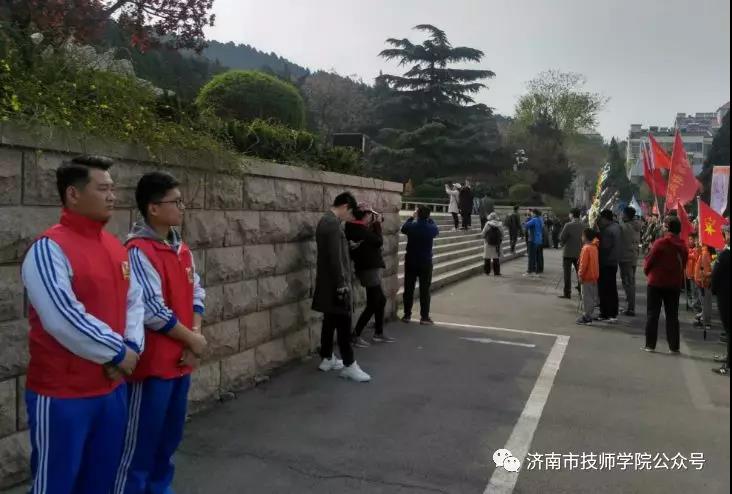 4月7日上午,濟南市技師學院軌道交通學院負責人董志坤、團總支書記姬曦君帶領21名優秀學生及志愿者,參加了學院組織的英雄山革命烈士陵園祭掃活動。