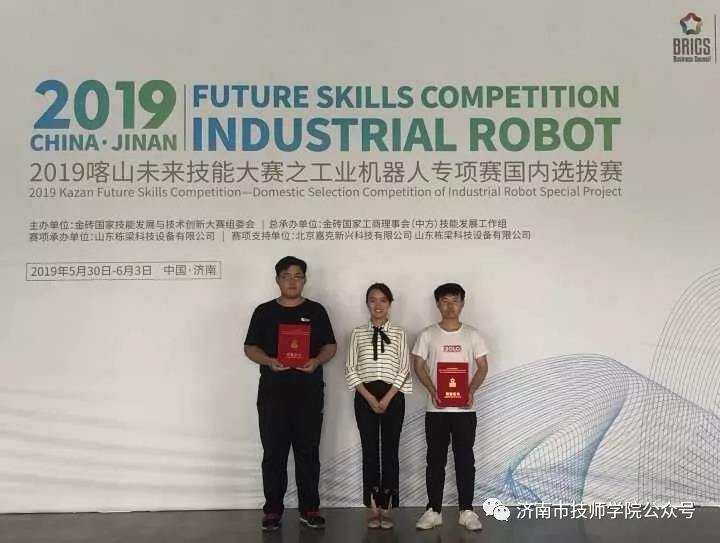 在日前結束的2019喀山未來技能大賽之工業機器人專項賽全國選拔賽上,濟南市技師學院機電工程學院派出的4位選手組成兩支隊伍,選手沉著應對、配合默契、發揮出應有的水平,分別獲得了1個一等獎和1個二等獎的優異成績。