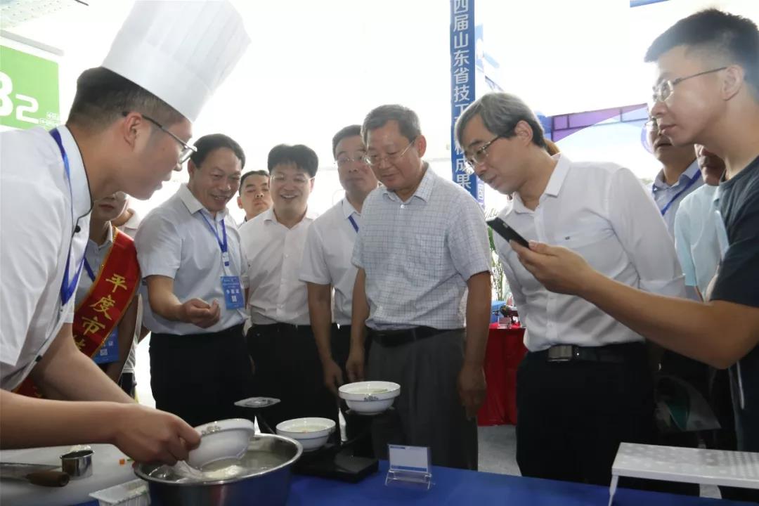 山東省人力資源和社會保障廳副廳長侯復東、職業能力建設處處長張龍、職業能力建設處副處長李建軍、職業能力建設處科長劉海鵬等領導來到我院的展區前視察指導,對現場展示的技能和作品表示贊賞。各位領導與我院參展人員進行了親切的交流,詢問了學院在招生就業、專業建設和校企合作等方面的情況,并給予了肯定。