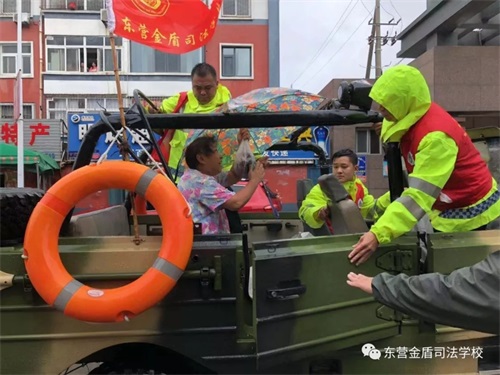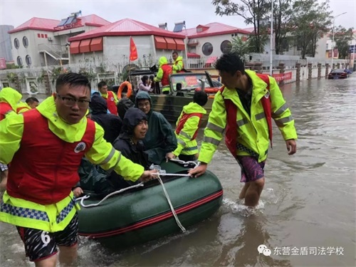 8月11日,在第9號臺風“利奇馬”的影響下,東營已經歷了長達一天一夜的暴雨侵襲,部分主干路及居民小區都被積水浸泡,有居民被困家中,暴雨的肆虐嚴重威脅了人們的生命和財產安全。東營金盾司法學校參與救援。