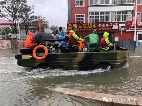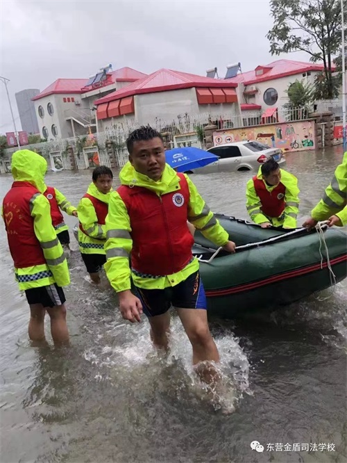 暴雨無情,金盾有愛;險中救援,風雨無阻。東營金盾司法學校應急救援隊將繼續參與臺風搶險行動!響應東營各級政府號召,用大愛鑄鋼鐵長城,用行動回報社會,勇擔使命!