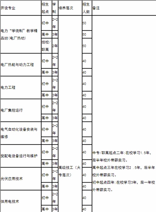 培養(yǎng)具有從事發(fā)電廠變電站電氣設(shè)備運行與檢修等工作能力的應用型中等專業(yè)技術(shù)人才。