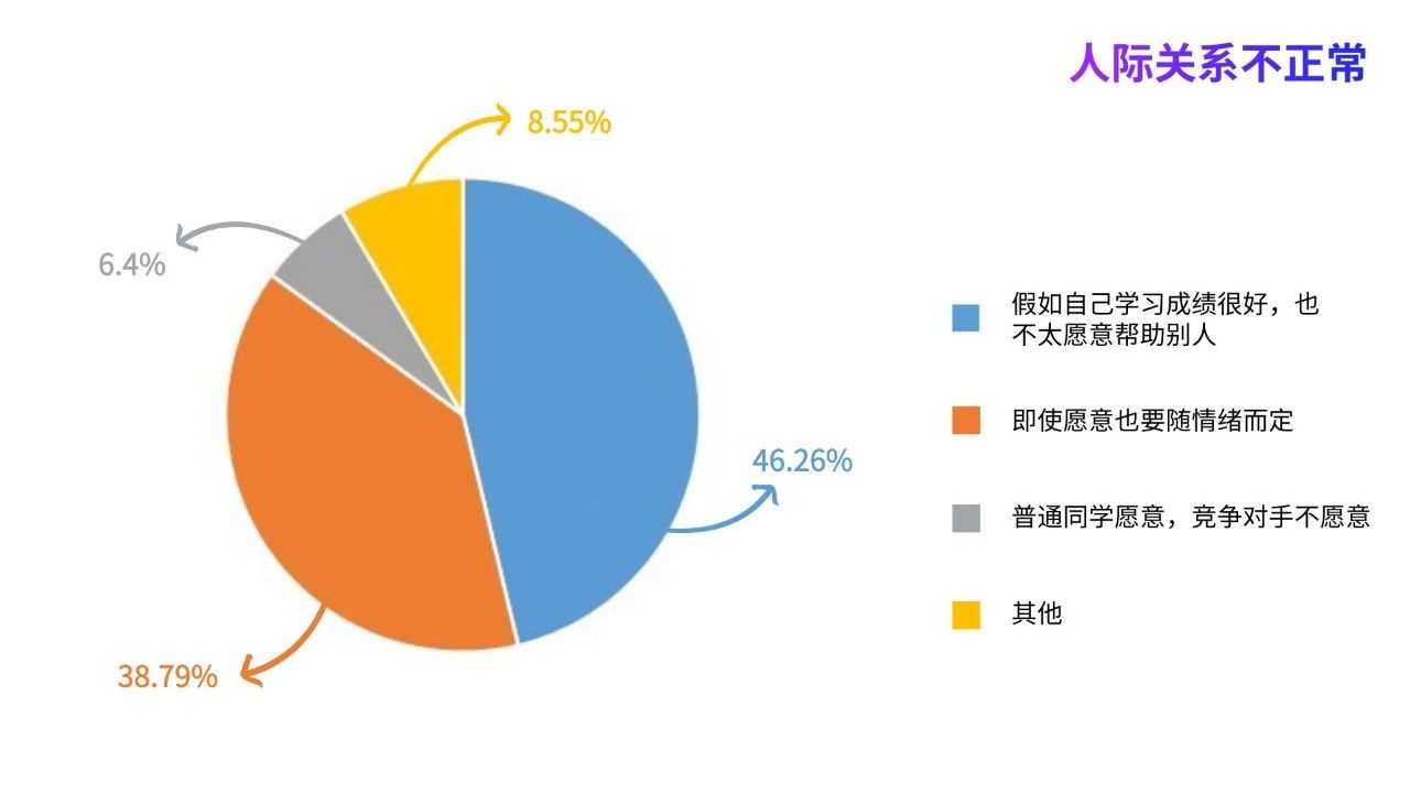 還有46.26%的學生回答,假如自己學習成績很好,也不太愿意幫助別人;