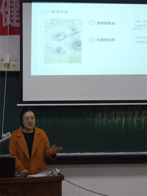 徐老師先從女生的身體變化開始講解,在青春早期,女生的身高、體重以及乳房、月經都開始有了變化,如何正確看待青春期身體變化給情緒帶來的影響。針對女生身體變化、心理變化如何應對,徐老師從情緒問題、自尊問題、如何與異性交往以及如何與父母、老師溝通等方面進行了深入淺出的講解。