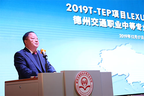 隨后,德州交通職業中等專業學校校長魏榮慶表示,對蒞臨活動現場的各位領導表示歡迎,并就德州交通職業中等專業學校T-TEP項目基本情況、學校發展歷程、豐田班特色教學、品牌建設、實習就業、師資培訓、支教扶貧等方面進行了代表發言,得到與會人員一致好評。