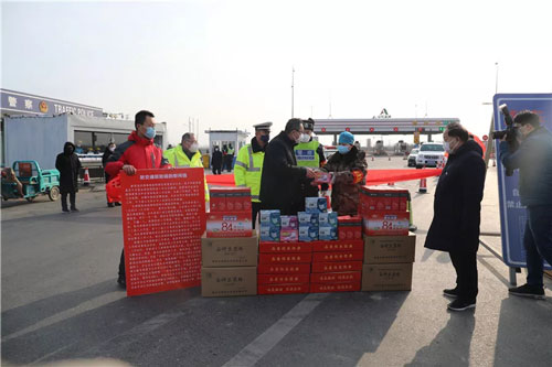 2月5日上午,德州交通職業中等專業學校向德州南高速檢測點、德州市經濟開發區綜合執法監管部環衛處捐贈價值5萬元的物資。物資包括1200只日本援助口罩、4箱84消毒液、10箱豆奶粉、80個水杯、20箱蘋果。