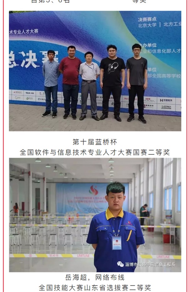 技能大賽成績豐碩,擁有省級優秀指導教師8名、省級裁判3名,學生取得世界技能大賽山東省選拔賽二等獎4項,全國職業院校信息技術技能大賽二等獎1項,藍橋杯全國軟件和信息技術專業人才大賽省賽JAVA和C語言組第一名,國賽二等獎等成績。