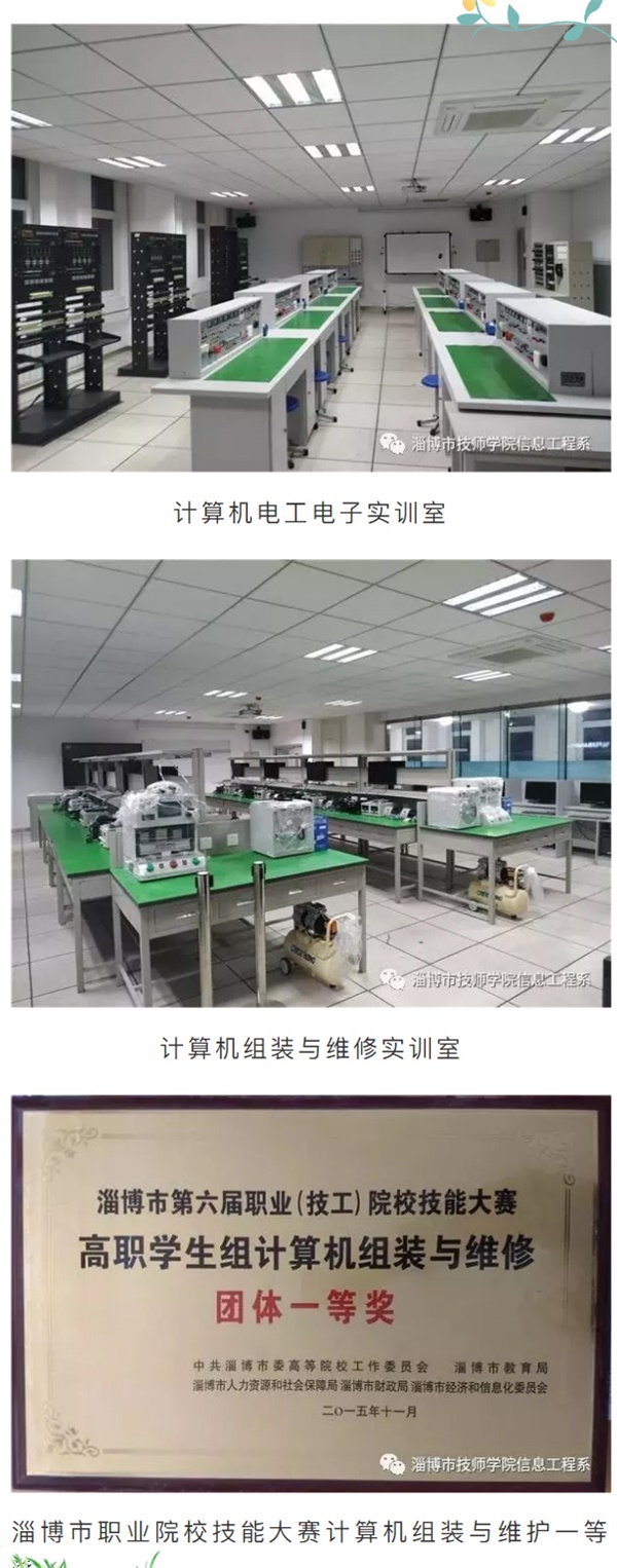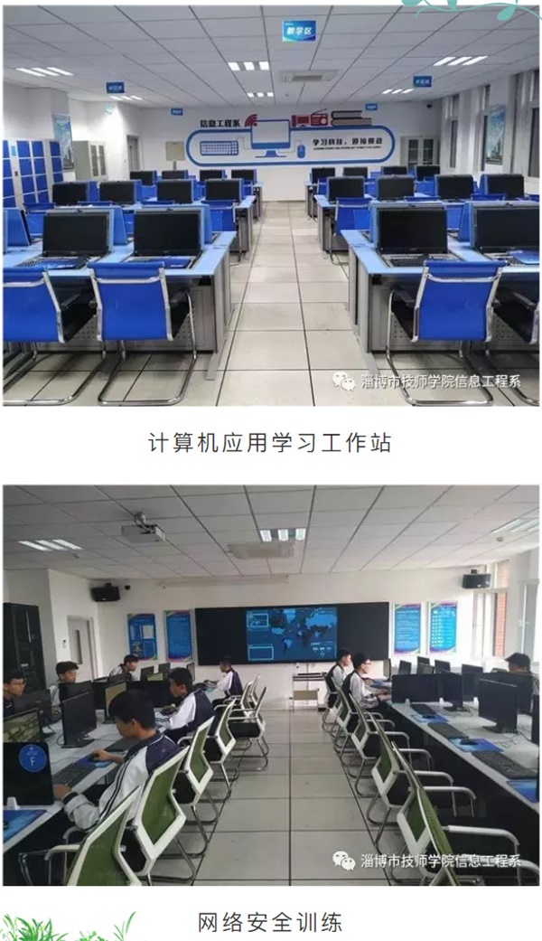 淄博市技師學院信息工程系實習實訓條件優越,實訓場地占地1000余平方米,實訓總資產500余萬元,現有信息網絡布線實訓室、網絡系統管理學習工作站、計算機與終端產品維修實訓中心、物聯網學習工作站等十幾個一體化學習場地,與二十多家企業建立長期穩定的校企合作關系。