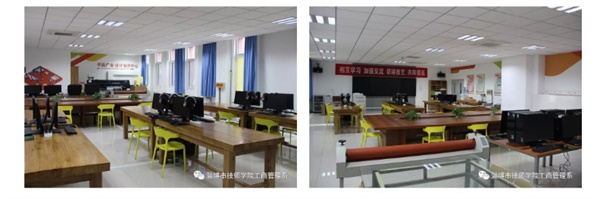 淄博市技師學院工商管理系目前擁有20個專業實訓室,有專業機房8個,電子商務實訓室3個、攝影實訓室1個、虛擬商業社會環境財務綜合實訓室1個、ERP企業經營管理沙盤實訓室1個、會計電算化實訓室2個,快遞實訓室1個,智慧倉儲配送實訓室1個、廣告制作實訓室2個,滿足了“做中學,學中做”的一體化教學模式。