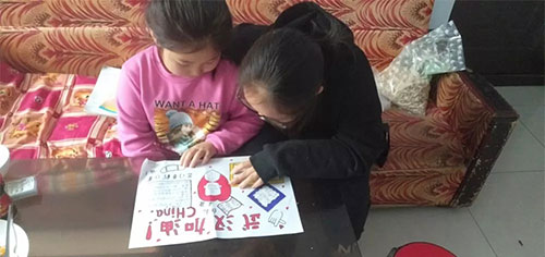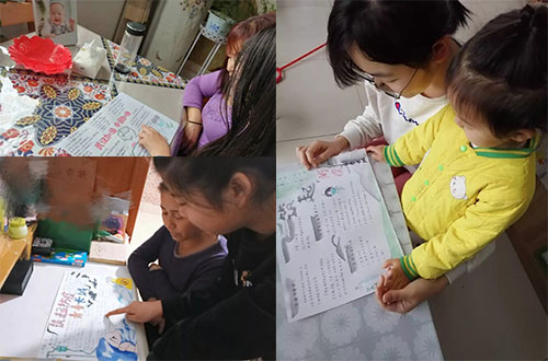 同學們將自己制作好的手抄報,向身邊親友進行詳細介紹。