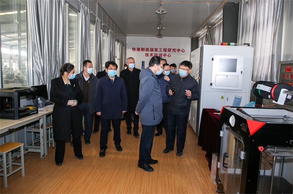 于杰副省長(右二)等領導考察山東工程職業(yè)技術大學與企業(yè)合作研制的3D打印機