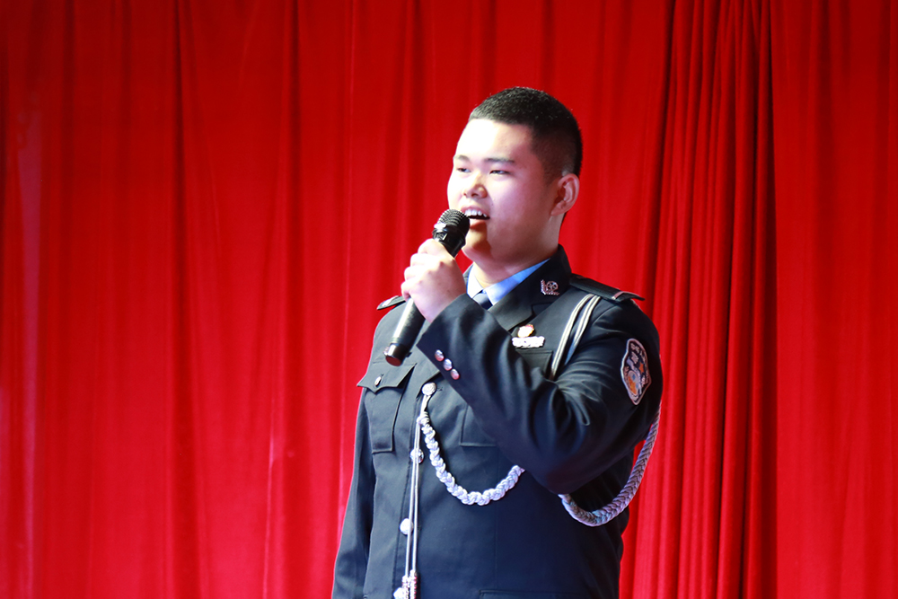 晚6時30分,比賽正式拉開帷幕。警裝在身,每一位選手都以飽滿的熱情、昂揚的姿態登臺演講,在演講中各位選手從當代青年的角度,聲情并茂地表達出對祖國的熱愛與感恩。來自三大隊一中隊的郝鵬舉同學通過講述中國在科學技術方面取得的卓越成就,提出青年要將責任擔在心頭,把使命放在心間;來自三大隊三中隊的袁文博同學通過演講《青春的使命》表示愛國就是愛家,我輩青年當以堅忍不拔之志捍衛祖國、建設未來;來自一大隊三中隊的石銅陽同學則另辟蹊徑地回顧了歷史的血與痛,描繪了當代的光與亮。15位選手的精彩演講引得全場掌聲雷動,經久不息,師生們從各位演講者或激情或深沉的演講中都深刻感受到了他們對祖國那份沉甸甸的熱愛。