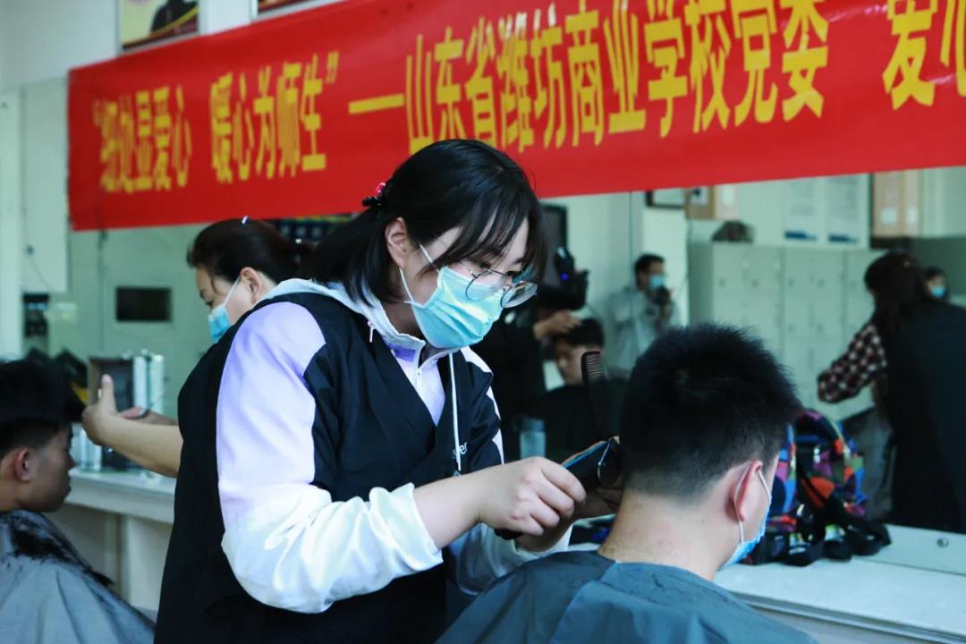 山東技校網 >> 菁菁校園 >> 免費理發,貼心慰問,濰坊商業學校關愛住校師生在行動
