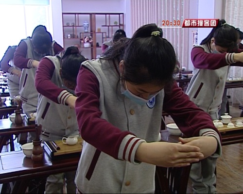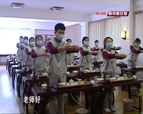 電視臺記者首先來到濟南應(yīng)用技術(shù)職業(yè)中等專業(yè)學校的茶藝室,課堂上,師生問好改成了行作揖禮。不光是課上,下課之后同學、老師相遇,也是用作揖禮打招呼。