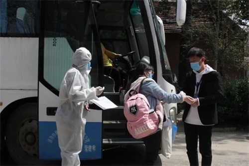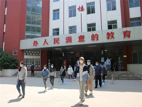 早上6點30分,全體教職工,志愿者到崗到位,翹首等待同學們歸來。學生們根據每個班級的時間錯時返校,到校學生統一佩戴口罩,通過手部以及行李消毒、體溫檢測、登記信息等流程進入校園,學校工作人員有條不紊地組織學生入校。