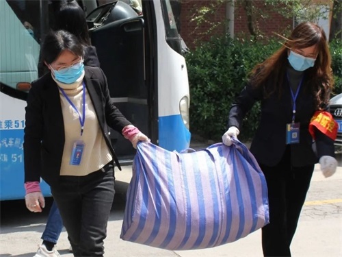 安全進入校園后,學生通過體溫復測進入宿舍,4人一間。考慮到學生的行李物品較多,家長又不能進學校,老師們變身“搬運工”幫助學生把行李運到宿舍并安置妥帖。