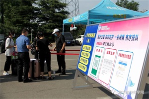 早晨的東大門,高大的紅拱門迎著朝陽,門口兩側(cè)和校園內(nèi),橫幅、道旗整齊有序,營造出濃厚的喜慶氛圍。校門口廣場上各系部的迎新點(diǎn)一字排列,老師們帶著各種材料,跟新生們一一核對(duì),現(xiàn)場告知應(yīng)該注意的防疫和學(xué)習(xí)生活事項(xiàng),然后由志愿服務(wù)者們帶領(lǐng)新生進(jìn)校園入住宿舍。院長丁漢邦、副院長劉成平、胡斌、劉華堂先后到現(xiàn)場查看。