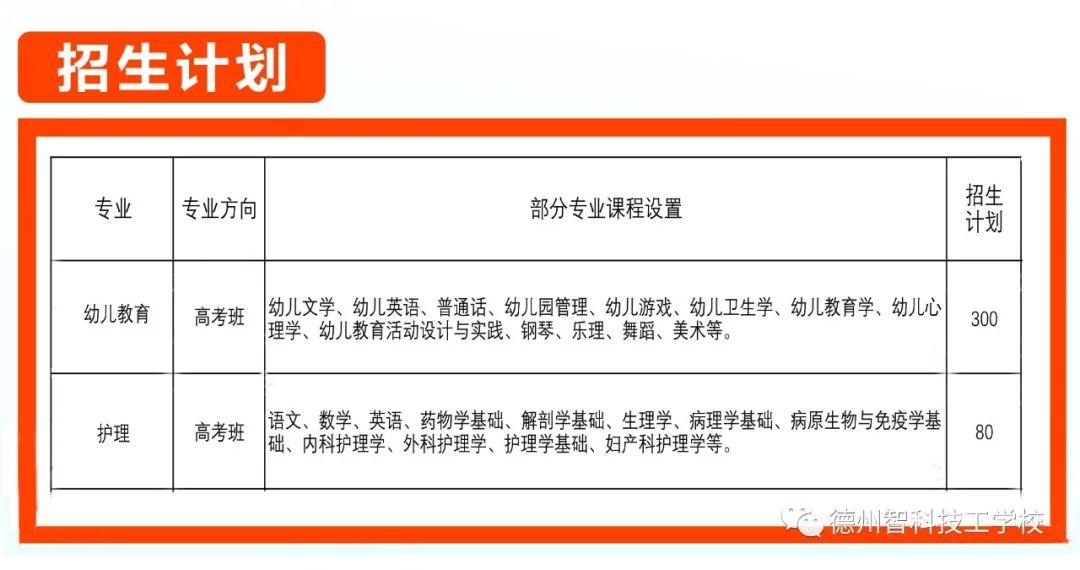 德州智科技工學校春考班招生計劃