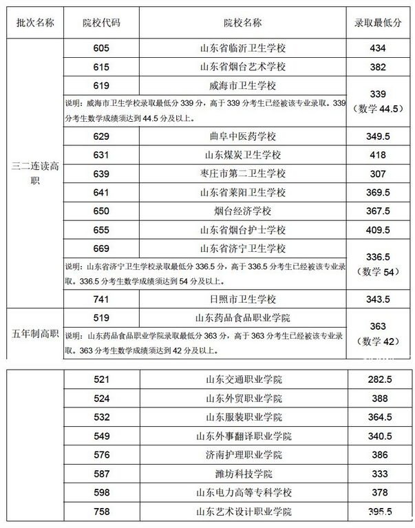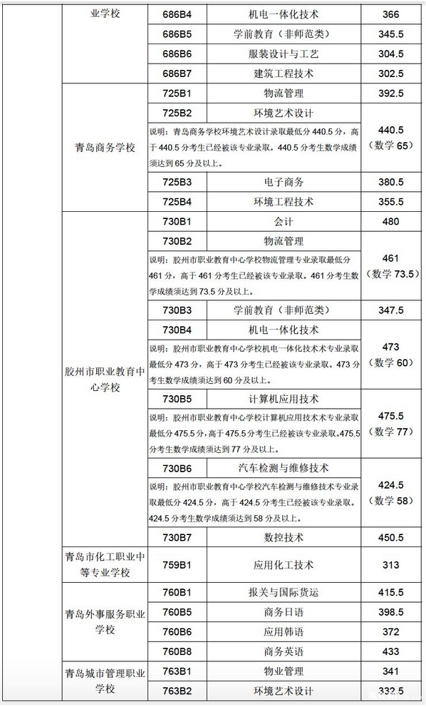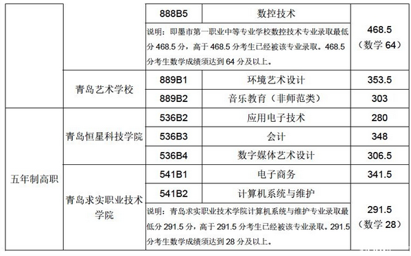 一、青島市招生學校五年制高職、三二連讀高職滿額專業錄取最低分。