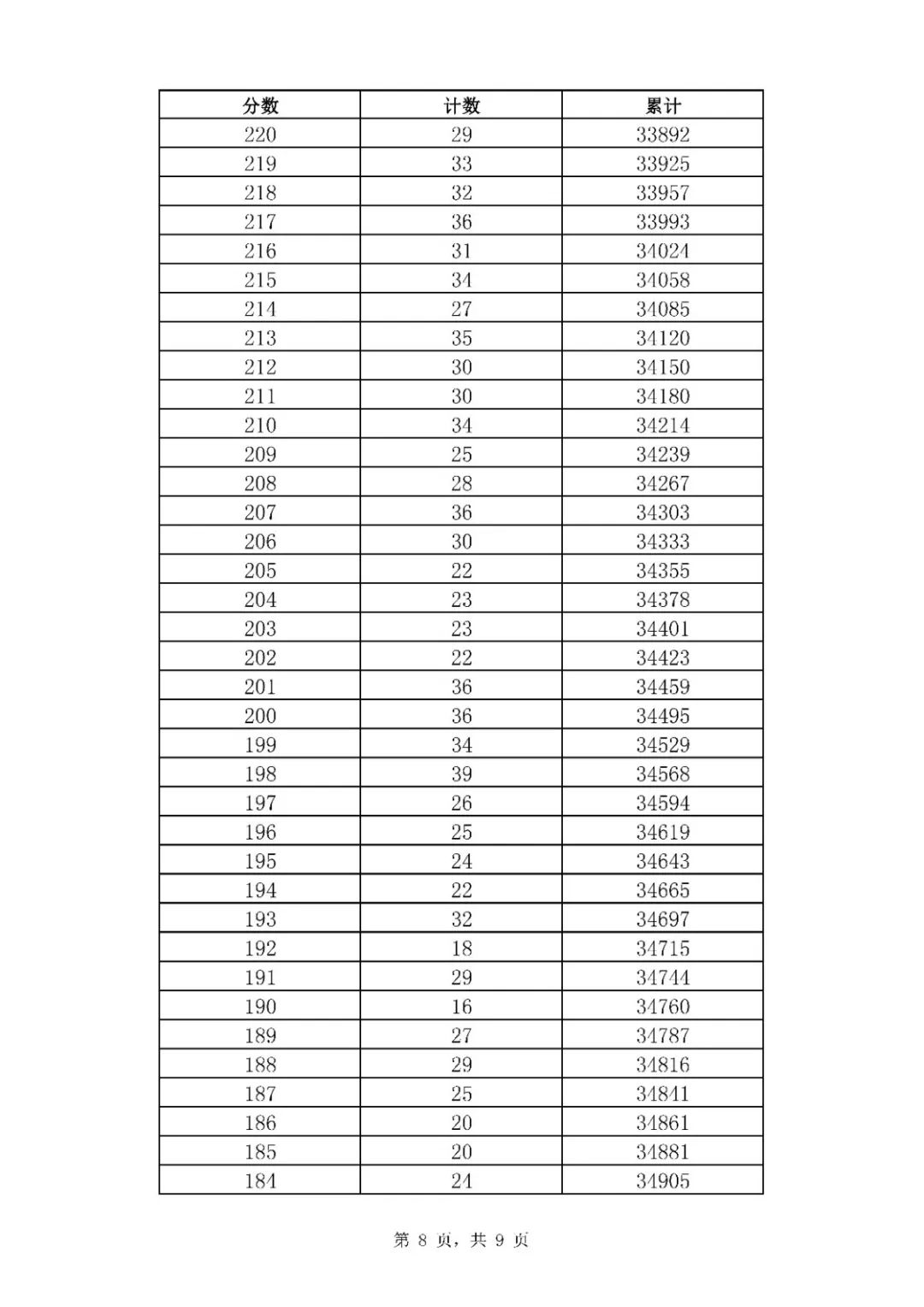 2020年山東濟南中考市內七區一分一段表統計公布