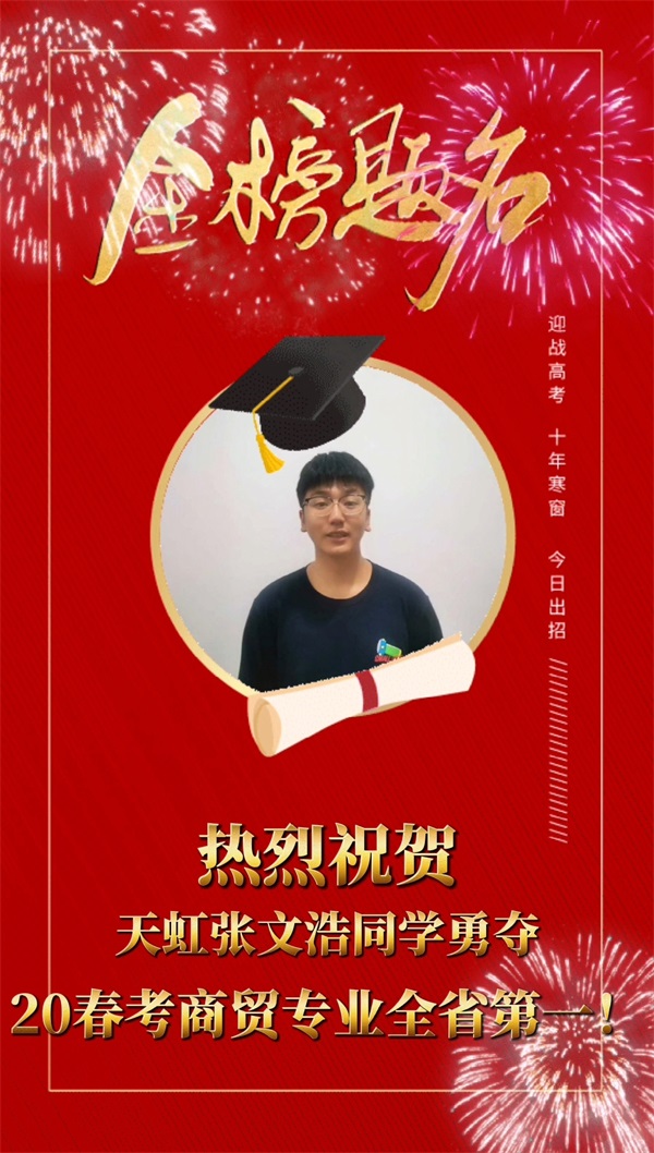 商貿(mào)專業(yè):張文浩同學(xué)勇奪全省第一,3人進(jìn)入前10名,21人進(jìn)入全省前100名!本科上線率高達(dá)92.93% !