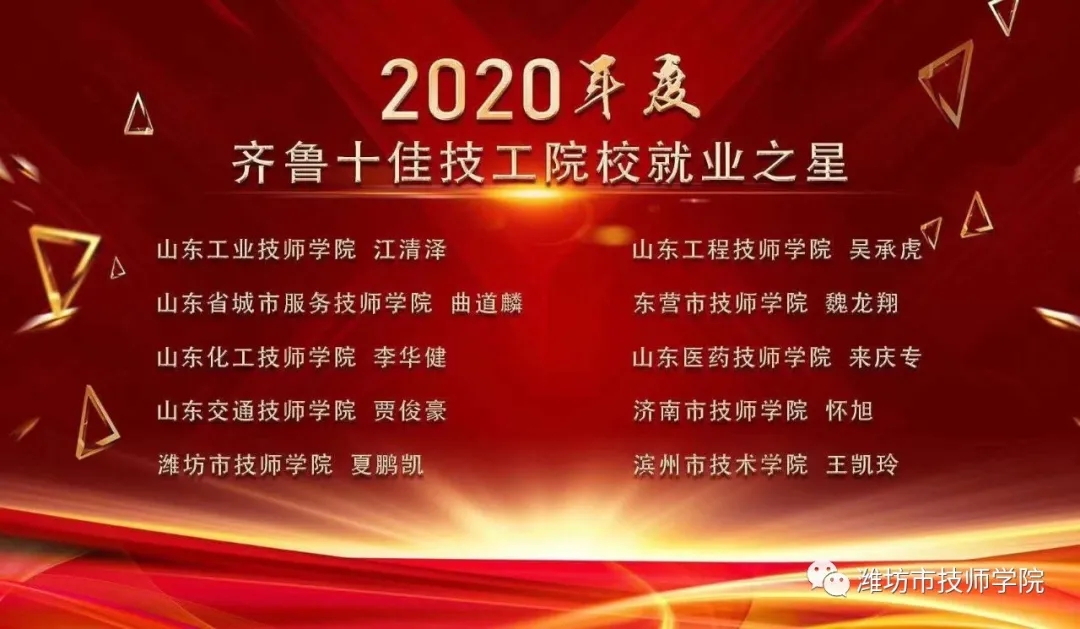 在8月22日舉行的第五屆山東省技工教育成果展上,濰坊市技師學院獲評“2020年度齊魯最具就業競爭力十佳技工院校”,這是學院繼獲評“改革開放40周年‘山東省最具就業競爭力十大技工院!狈Q號后就業領域獲得的又一殊榮。同時,濰坊市技師學院學生夏鵬凱獲評“2020年度齊魯十佳技工院校就業之星”。
