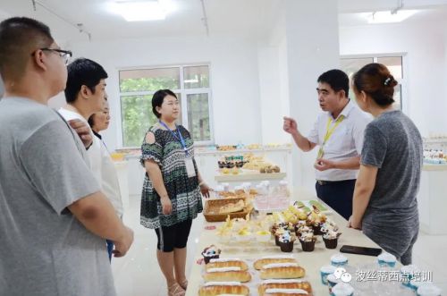 (左起)煙臺市職業技能鑒定指導中心副主任宋長春,芝罘區人力資源和社會保障局副局長曲穎,芝罘區人力資源和社會保障局職業能力建設科科長管靜,芝罘區職業技能鑒定中心科長李楠,煙臺市波絲蒂中西糕點職業技能培訓學校校長陳紅林在大賽現場。