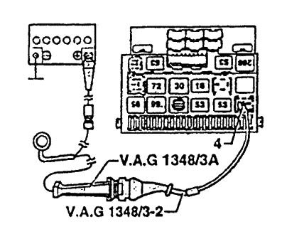 3)把帶有轉接線V.A.G1348/3-2的遙控器V.A.G1348/3A接到觸點4和蓄電池正極上,見圖7。