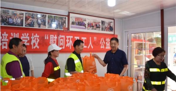 山東技校網 >> 菁菁校園 >> 波絲蒂公益行,陳紅林校長一行炎炎夏日慰問環衛工人