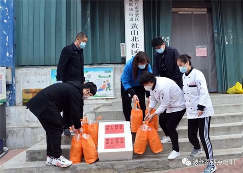 3月23日,煙臺波絲蒂西點培訓學校老師在陳紅林校長的帶領下,為毓璜頂街道黃山北社區的防疫一線人員送去親手做的愛心面包、蛋糕,為他們鼓勁加油!愛心關懷,攜手助力抗疫!