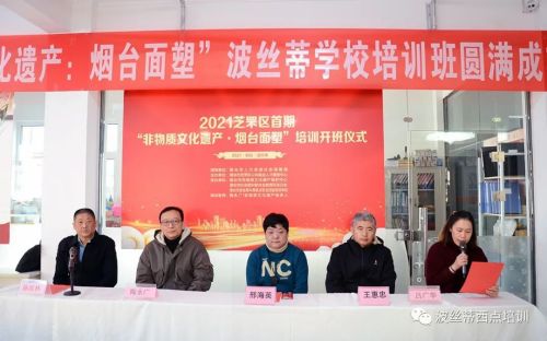2021年12月13日上午,2021芝罘區(qū)首屆“非物質(zhì)文化遺產(chǎn)·煙臺面塑”培訓(xùn)班在煙臺波絲蒂中西糕點(diǎn)職業(yè)技能培訓(xùn)學(xué)校順利開班。本次培訓(xùn)旨在更好地傳承發(fā)揚(yáng)“煙臺面塑”這項(xiàng)非遺文化,推進(jìn)國家非物質(zhì)文化遺產(chǎn)保護(hù)工作,培養(yǎng)一批德才兼?zhèn)涞暮细駛鞒腥耍浞职l(fā)揮膠東文化資源豐富和傳統(tǒng)文化底蘊(yùn)深厚的優(yōu)勢,培養(yǎng)和帶動非遺專業(yè)人才更好地提升技能、就業(yè)創(chuàng)業(yè)。 煙臺市芝罘區(qū)公共就業(yè)和人才服務(wù)中心培訓(xùn)科邢海英科長(中)、煙臺面塑傳承人本次培訓(xùn)老師陶永廣(左二),中飯協(xié)膠東促進(jìn)委研究院秘書長王惠忠(右二),煙臺市波絲蒂中西糕點(diǎn)職業(yè)技能培訓(xùn)學(xué)校校長陳紅林(左一)共同出席了開班儀式。